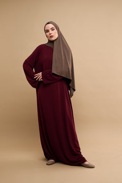 Our Premium Jersey Abaya in burgundy is crafted from the same buttery-soft premium jersey fabric as our Jersey Khimar. This lightweight, breathable material drapes beautifully and feels soft against the skin, making it perfect for everyday wear, all year round.