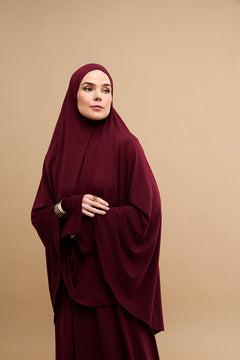 Our Premium Jersey Khimar in burgundy is crafted from the same high-quality premium jersey fabric as our Premium Jersey Hijabs. This khimar is soft, stretchy, breathable and wrinkle-resistant, ensuring a flawless drape and easy wear.